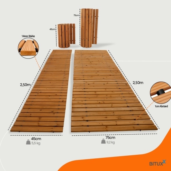 Ogrodowa Drewniana Ścieżka BITUXX 250x75 cm Antypoślizgowa Zwijana