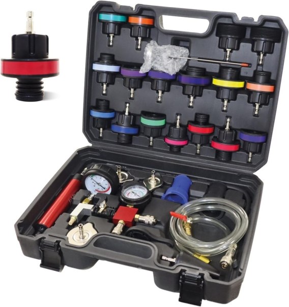 Tester Szczelności Układu Chłodzenia 28 el. Pompa + 21 Adapterów