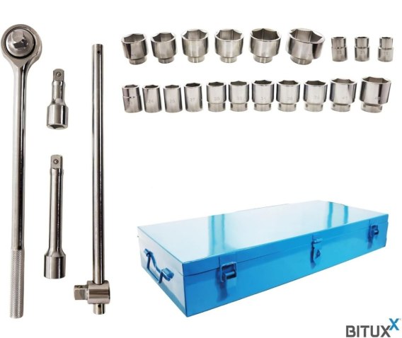 Zestaw kluczy nasadowych 3/4" 19-70 mm grzechotka + przedłużki
